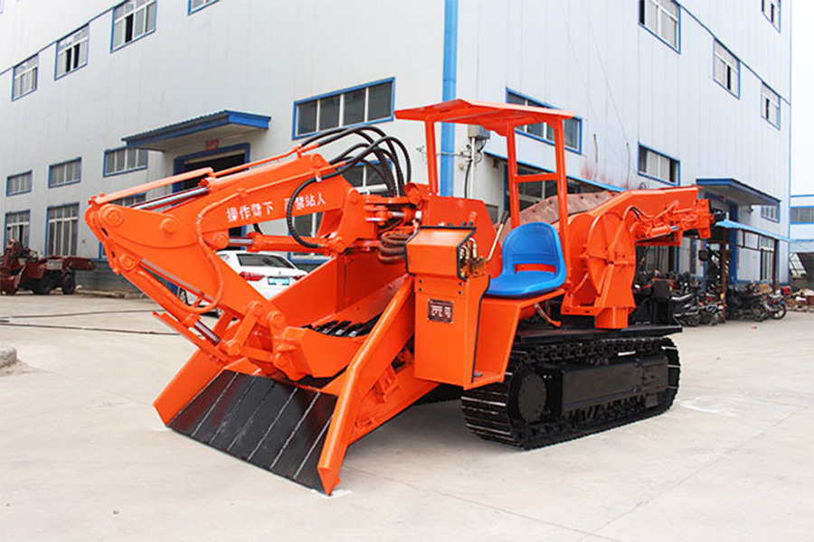 The mucking loader is controlled by hydraulic pedals and joysticks.